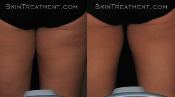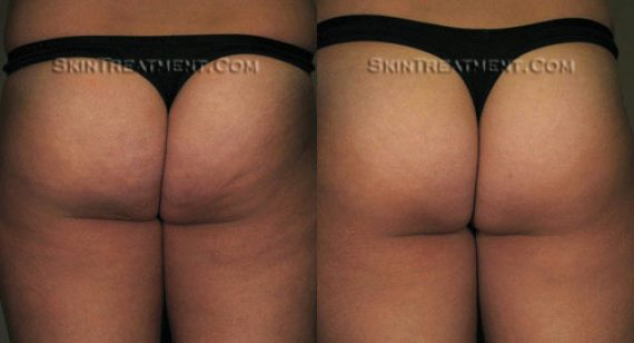 Cellulite is improved and the buttocks are lifted. The top photo is at mild muscle clench, the second photo is at moderate muscle clench and the bottom photos is at full muscle clench.