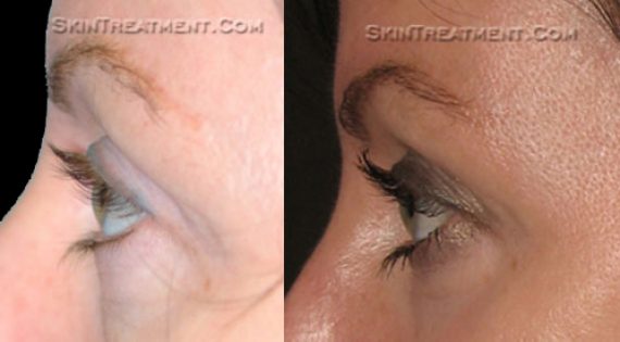 The eyelid and skin under the eye are tighter and the eyebrow is higher, restoring a youthful eye area.